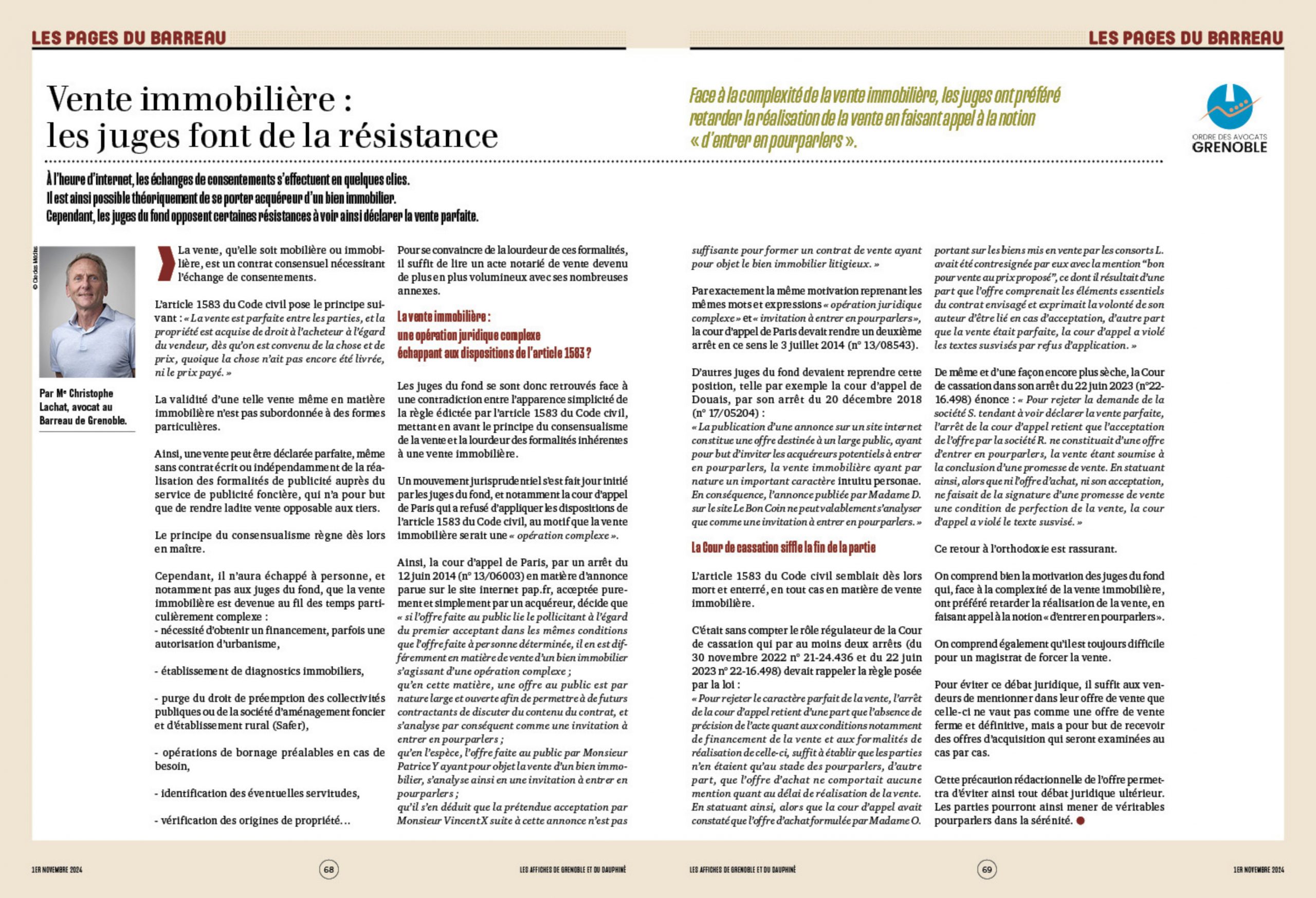 Publications de Maître Christophe LACHAT, avocat à Grenoble
